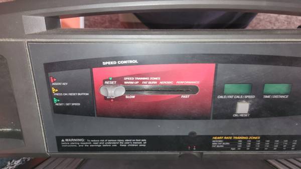 Weslo's Cadence TS310 treadmill for sale. Has variable speed control and distance/time/speed digital display. Folds upright to save space when not in use.