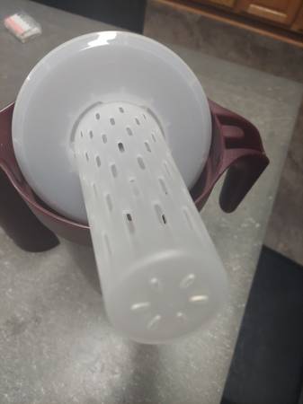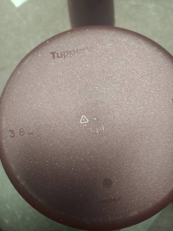 Tupperware 1 gallon pitcher with suction lid and 3 cups. All are in excellent condition.