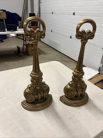 Set of Vintage Decorative Door Stops - Dorchester Square - Solid Mattahedeh Brass; Felt Bottoms. $60 for Both.