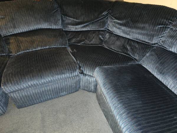 3 pieces of sectional. Blue sleeper sofa, wedge & recliner. Sofa bed is full size. Must pick up asap. Located in Bear, DE.