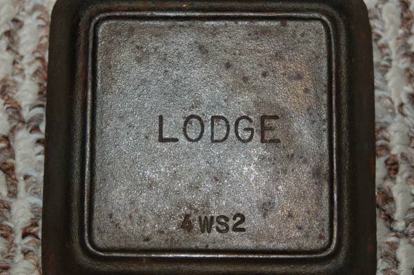 3. Lodge cast iron square skiller - 4" x4". Needs to be cleaned. $5.00