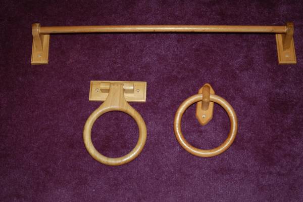 1. Wooden towel bar & rings - $5.00 for all. They are in excellent condition.