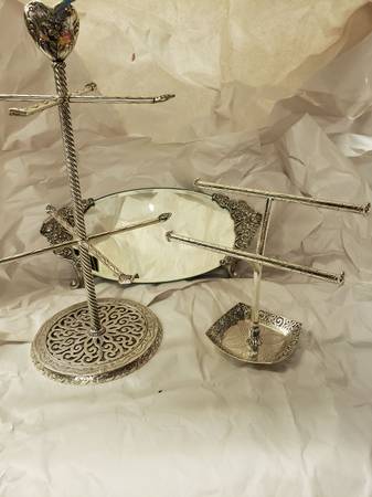 Got 2 very nice jewelry necklace and ankle bracelet stands, along with a Contessa mirror vanity stand. Mirror is 13" L x 7" W, which alone cost $95. Look at the pics. Call 302 two five zero 7311....