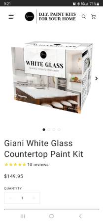 I have a white giani countertop paint kit. Asking $25. All brand new. I bought it then changed my mind. Decided to keep the color of my counters once I redecorated my kitchen. Original price over...