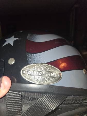 Harley davidson patriotic helmet with visor, ear flaps and back tie. Size xl or large. Excellent condition Cash only No shipping