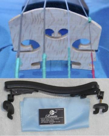 All-blue Archetto Presto outfit in half size. Ready to play in blue lightweight case, comes with shoulder rest, blue bow, and rosin. Check with your school orchestra teacher to make sure they allow...