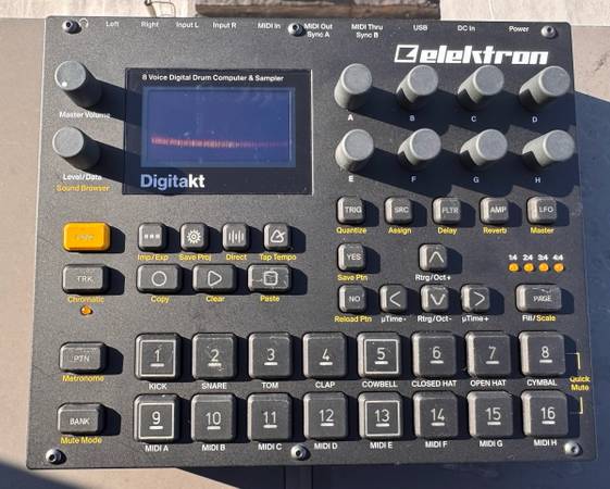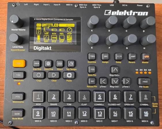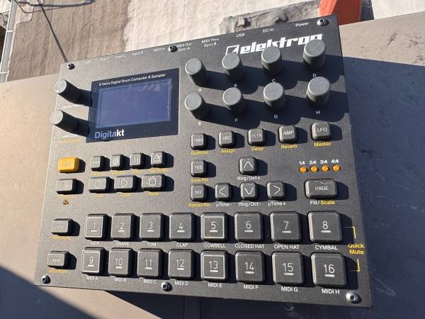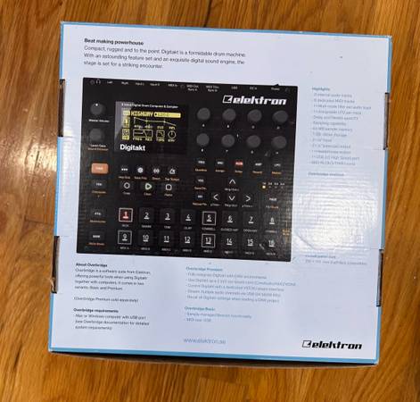 Selling a Digitakt in perfect working condition, factory reset and updated to the latest firmware version. Some wear on buttons (see photos). Comes with original box, manual, and power adapter.