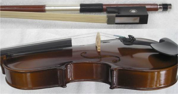 Full size student violin, very nice condition, case is a little ratty but both zippers work. Ready to play with a wooden, a shoulder rest, a rosin.