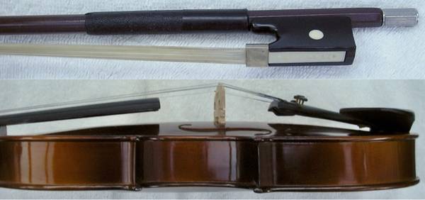 No-name full size violin, body is in great shape, seams have been checked. Plays very well with a Glasser and new steel core strings. Comes in cloth covered hard case, includes shoulder rest and...