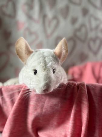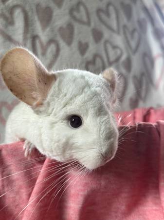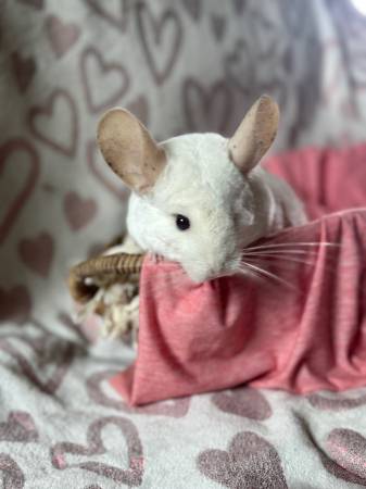 Female white chinchilla she is 2 years old and very friendly loves to be held!