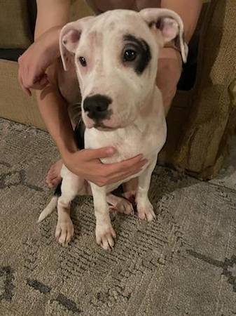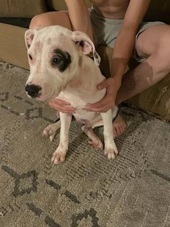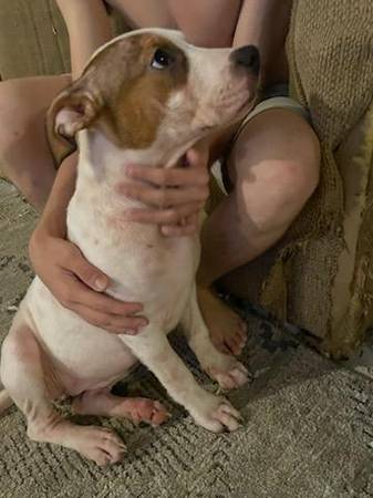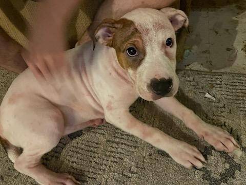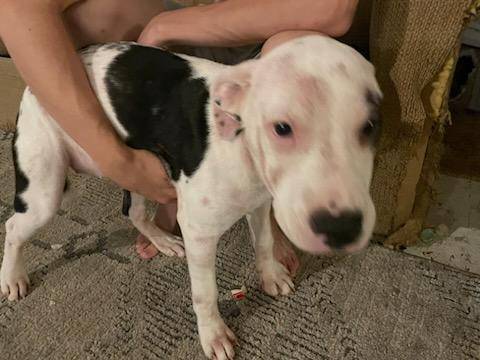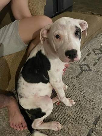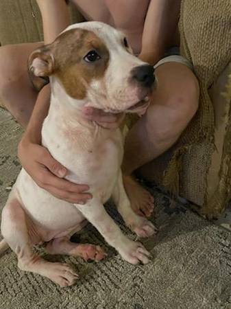 We have 2 female pitbull puppies left from an accidental litter. They were born on May 20th, 2025. Freya is the Black and White puppy. Daisy is the Brown and White puppy. They are up to date on all their shots. Have the paperwork for their shots. Would recommend they go to homes that don't have cats. They like to bark and chase cats.