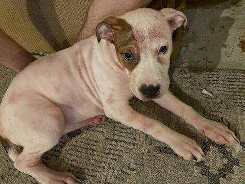 In the pics you will see pink spots all over them. It's because they got fleas from staying with a friend for a week while we was on vacation. We are currently treating their fleas.