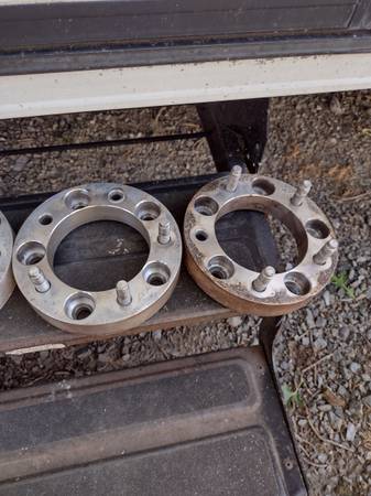 4- 5 lug wheel spacers 1 1/4 deep in good condition with "20 lug nuts " to hold spacer on .Three studs removed and needs to be replaced. $60.00 cash only.