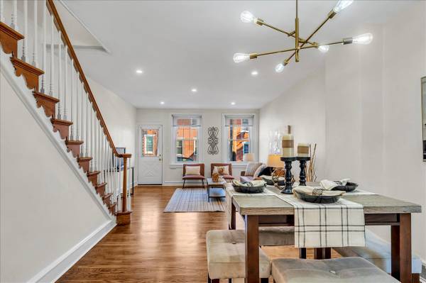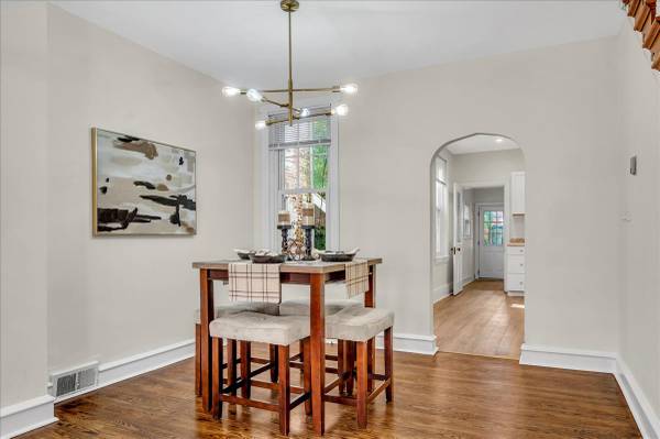 🍽️ Spacious dining area with a brand-new chandelier