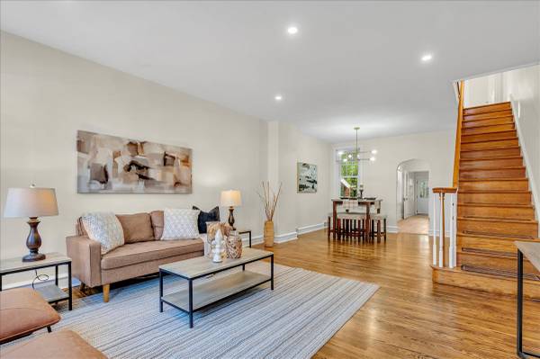 💡 Newly refinished solid oak hardwood floors & recessed lighting