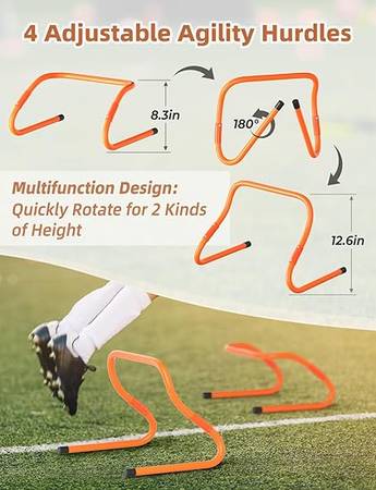4 Agility Hurdles Football Soccer Speed Training Equipment Set: Agility Hurdles with Adjustable 2 Height for different drills and techniques. A must have for football baseball basketball workout acceleration training