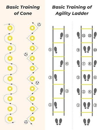 All You Need Agility Training Equipment Kit Include: Adjustable 4 Agility Hurdles,20 ft 12 Rungs Speed Ladder,12 Disc Cones, 1 Resistance Parachute with release belt,1 jump rope, 4 resistance bands, 1 cone holder,1 paper drills guide, 4 metal pegs, 1 carry bag