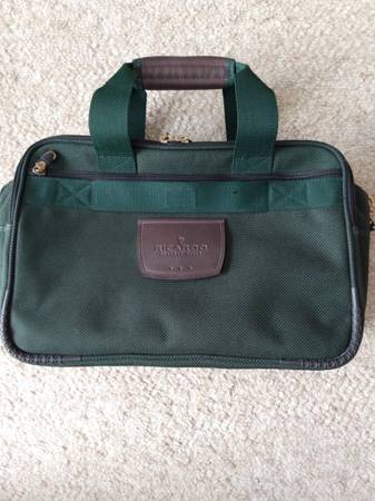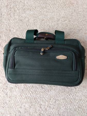 BY RICARDO OF BEVERLY HILLS. THIS HANDSOME HUNTER GREEN BRIEFCASE WITH LAPTOP COMPARTMENT IS BRAND NEW AND NEVER USED. COMES WITH DETACHABLE SHOULDER STRAP. MADE OF A HEAVY NYLON WOVEN MATERIAL. HAS MULTIPLE COMPARTMENTS. IS LIGHTWEIGHT AND VERY STRONG. GREAT FOR SCHOOL OR WORK. APPROX. SIZE 19" X 12"X X7".