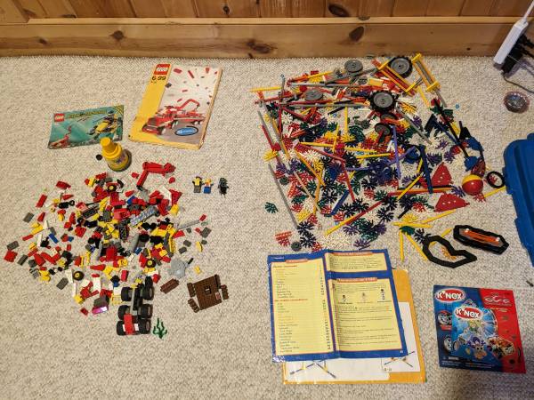 In excellent condition pile of 300+ pcs Lego and Knex Bucket (4100, 7770, 8958).
