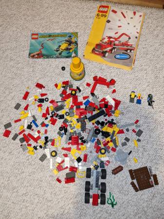 The Lego pile photo is a combination of 4100 and 7770. Both sets are missing pieces so kids will get to be creative with those.