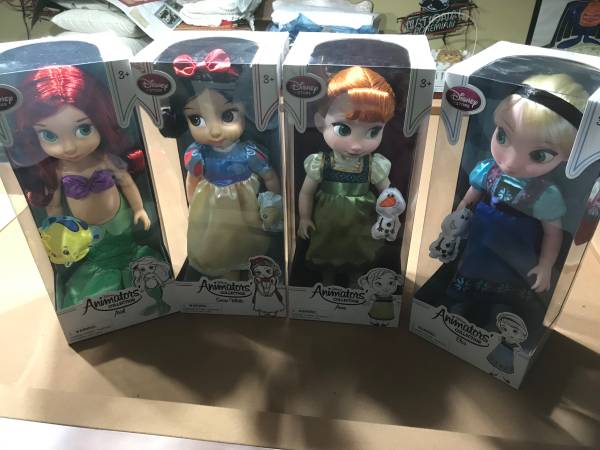 Up for sale is a set of four Disney Animators dolls. It includes Ariel, Snow White, Anna, and Elsa. New in the box. $150.