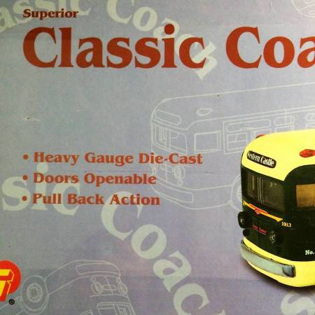 SUPERIOR SUNNYSIDE CLASSIC COACH GM 'OLD LOOK' LOOK-ALIKE BUS 6-PACK. Diecast metal body castings with clear plastic windows, pull-back friction motors, full interiors, opening doors (Including emergency side exit) and free-rolling wheels on rubber-like tires. Great for Lionel O Gauge Trains. 1/50 Scale