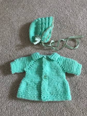Vintage Handmade Doll Sweater Set Pretty Green color Snap closure Approximately 5 inches Good condition Any questions, please ask