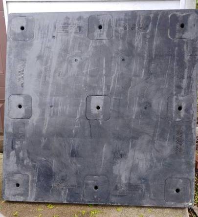 Plastic Pallets. One 48" x 48," strong, sturdy, unbroken plastic pallet with solid top. $17 or best offer. The most ideal thing for flood prone basements. We can get more plastic ones, especially 37" x 37" and 37" x 43" and 40"x 48". Tell me whatever size you are hoping for.