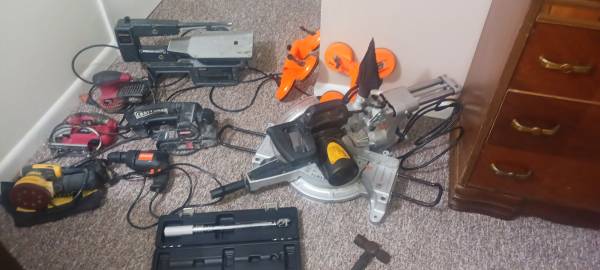 Skill saw,skill jig saw laser,belt sander,,Dewalt sander,icon wrench,sur grip,clutch miter box laser,hammer,plainer all 500 ,,please text or call