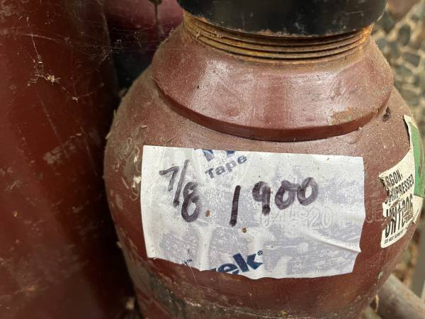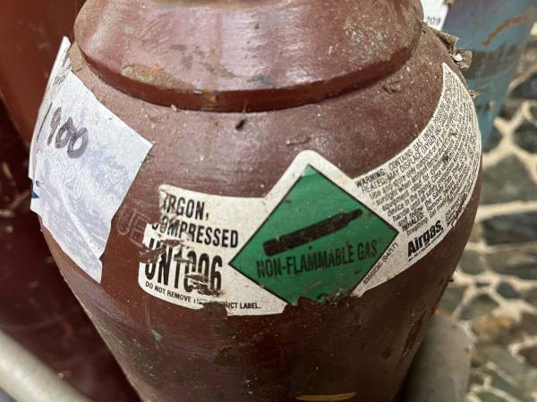 100% Argon Tank 125cf, 1900psi $299 privately owned--east refill anywhere (air gas) 48" tall with cap $299 firm