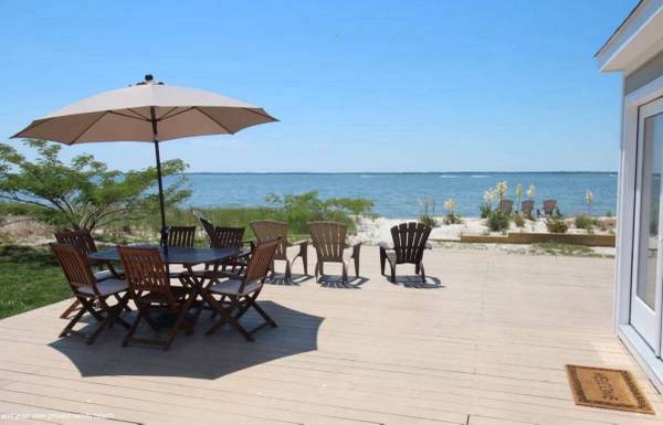 One of a kind beach house with private sandy beach with oversized deck... tastefully appointed with breathtaking views from every room. Open floor plan, with kitchen, dining, and living room all sharing a wall of French doors opening up to the beach and bay. Gourmet kitchen great for entertaining. Two master bedrooms and 2 children's room. Directly on Rehoboth Bay: private sandy beach and water access right outside your door.