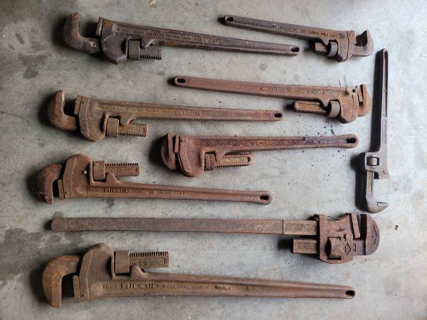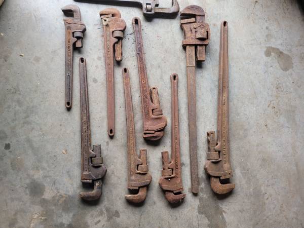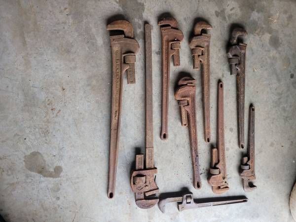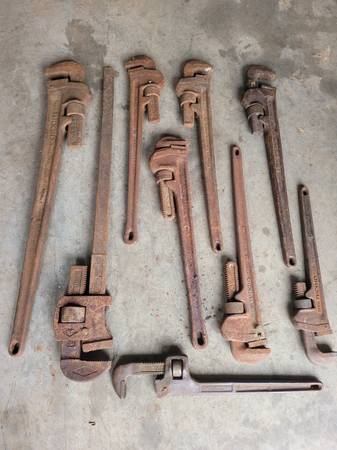 That's $100 for the whole lot. Got a bunch of pipe wrenches ranging from 36" down to 14". Look at the pics. Call 302 two five zero 7311. Thnx.