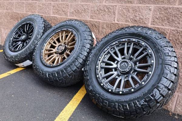 Fuel Rebel 8x180s in Matte Black Matte Bronze Matte Gunmetal 20x9 +1 Offset Few tire options 275/65/20 33x12.5x20 35x12.5x20 37x12.5x20 Depending tire size and size pricing ranges from $2895 and up....