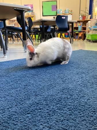 Free to a good home. Lovely Male Harlequin Rabbit. Was a classroom pet, so is wonderful with kids - doesn't mind chaos and noise. Has been around a dog and was fine with him (though only in his cage with the dog around!). He is a wonderful pet to let hop around. Semi-litter trained.